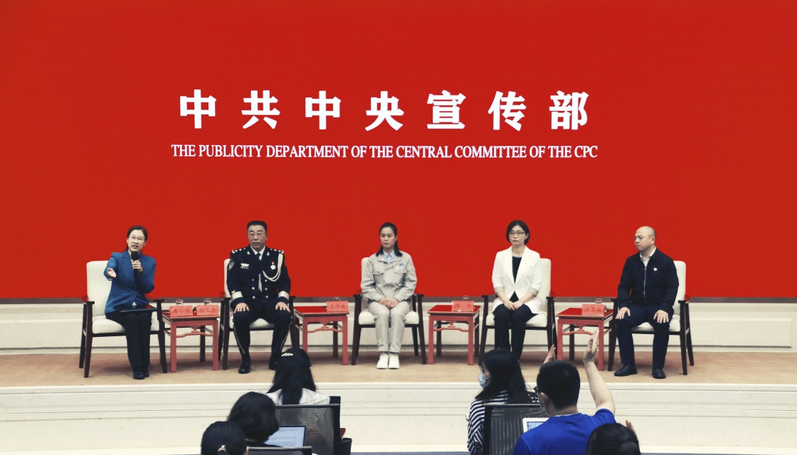 2021年7月22日,中宣部舉行“傳遞榜樣力量 爭取新的光榮”中外記者見面會(huì)。四位“兩優(yōu)一先”代表在會(huì)上分享了他們愛黨為民、擔(dān)當(dāng)奉獻(xiàn)的感人故事。新華社記者 潘旭 攝