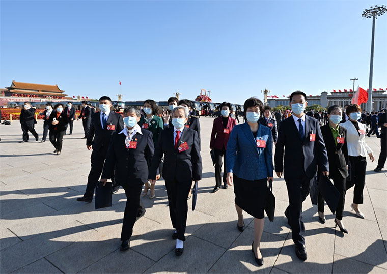 △ 10月16日,中國共產(chǎn)黨第二十次全國代表大會在北京人民大會堂開幕。這是代表抵達(dá)會場?!⌒氯A社記者 劉金海 攝