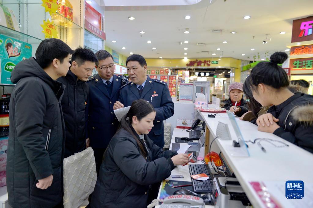河北寧晉縣紀檢干部與稅務(wù)稽查人員在當(dāng)?shù)匾患页袡z查是否有單位公款購買購物卡情況(2018年12月29日攝)。新華社記者 牟宇 攝