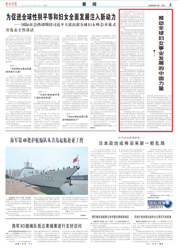 全球婦女命運(yùn)與共,中國(guó)婦女事業(yè)與全球婦女事業(yè)發(fā)展緊密相連。中國(guó)以制度創(chuàng)新夯實(shí)基礎(chǔ)、以議題融合拓展空間、以多邊合作凝聚合力,譜寫(xiě)全球婦女事業(yè)發(fā)展新篇章。未來(lái),中方將繼續(xù)與世界各國(guó)一道,攜手共進(jìn),推動(dòng)全球婦女事業(yè)邁向更平等、更包容、更繁榮的明天。