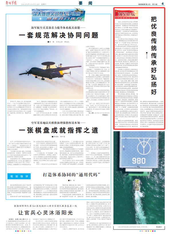 當(dāng)前,全軍各單位正深入貫徹執(zhí)行《關(guān)于大力弘揚(yáng)優(yōu)良傳統(tǒng)、全面肅清流毒影響 重塑政治干部形象威信的若干規(guī)定》,廣泛開(kāi)展“政治工作好傳統(tǒng)是什么,如何立起政治干部好樣子”討論辨析,一大批政治干部特別是政治領(lǐng)導(dǎo)干部帶頭徙木立信,以實(shí)際行動(dòng)弘揚(yáng)政治工作好傳統(tǒng)、立起政治干部好樣子。