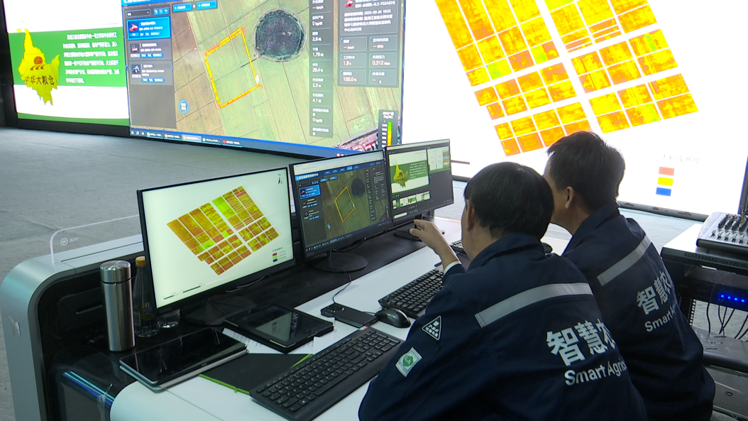 七星農(nóng)場“科技賦能農(nóng)業(yè)生產(chǎn)”的場景不僅在田間地頭,還在農(nóng)場智慧農(nóng)業(yè)指揮中心的大屏幕上上演。今年,該中心首次投入應(yīng)用多光譜成像水稻長勢圖,為秋收提供了精準(zhǔn)高效的數(shù)據(jù)支撐。“我們通過大數(shù)據(jù)、人工智能等技術(shù),分析水稻成熟度、未來氣象等,制定收獲排期,讓秋收更為有序?!痹撝笓]中心高級主管王勇說。