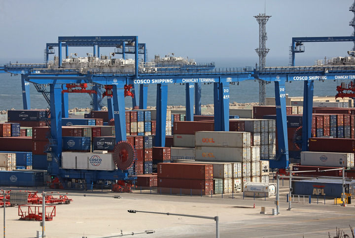 這是2025年10月7日拍攝的秘魯錢凱港碼頭擺放的集裝箱。位于秘魯首都利馬以北約80公里的錢凱港于2024年11月正式開港,標志著中秘共建“一帶一路”取得新的重要成果。新華社發(fā)(瑪麗安娜·巴索攝)