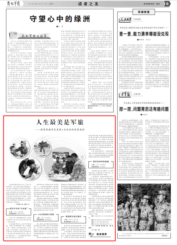 ——推薦新疆軍區(qū)某團(tuán)4名老兵的離營感悟