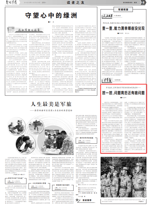 “這些問題都是官兵提出來的。今年大家講問題更多更具體,原因剖析更直接、更深刻?!秉S強告訴筆者,以往的年終復(fù)盤,大家雖然也能指出一些存在的不足,但大多停留在問題表象,整改也只是針對現(xiàn)象定措施,成效并不明顯。