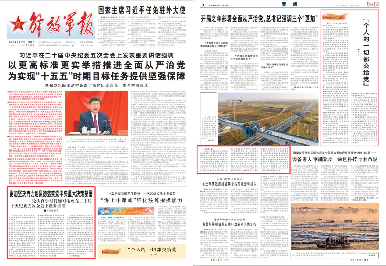 我軍是黨絕對(duì)領(lǐng)導(dǎo)下的人民軍隊(duì),黨的領(lǐng)導(dǎo)和黨的建設(shè)是我軍建設(shè)發(fā)展的關(guān)鍵。在貫徹落實(shí)黨中央重大決策部署方面,我軍理應(yīng)走在前列、標(biāo)準(zhǔn)更高。黨的二十屆四中全會(huì)立足中國(guó)式現(xiàn)代化戰(zhàn)略全局,對(duì)如期實(shí)現(xiàn)建軍一百年奮斗目標(biāo)、高質(zhì)量推進(jìn)國(guó)防和軍隊(duì)現(xiàn)代化作出新部署,充分彰顯了以習(xí)近平同志為核心的黨中央建設(shè)鞏固國(guó)防和強(qiáng)大軍隊(duì)、不斷開創(chuàng)新時(shí)代強(qiáng)軍事業(yè)新局面的堅(jiān)定意志和深謀遠(yuǎn)慮?!笆逦濉睍r(shí)期,我們只有更加堅(jiān)決有力地貫徹落實(shí)黨中央、中央軍委和習(xí)主席重大決策部署,強(qiáng)固黨對(duì)人民軍隊(duì)絕對(duì)領(lǐng)導(dǎo)的政治優(yōu)勢(shì),按照國(guó)防和軍隊(duì)現(xiàn)代化新“三步走”戰(zhàn)略安排,不懈努力、接續(xù)奮斗,才能堅(jiān)定不移走好中國(guó)特色強(qiáng)軍之路,提高捍衛(wèi)國(guó)家主權(quán)、安全、發(fā)展利益戰(zhàn)略能力,不斷把國(guó)防和軍隊(duì)現(xiàn)代化推向前進(jìn)。