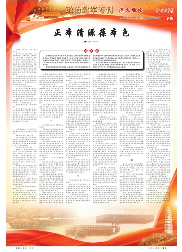 站在實現(xiàn)建軍一百年奮斗目標(biāo)的歷史關(guān)口,“突出政治上的正本清源”是一次精神源頭的尋根之旅,也是一次自我革命的淬火鍛造。