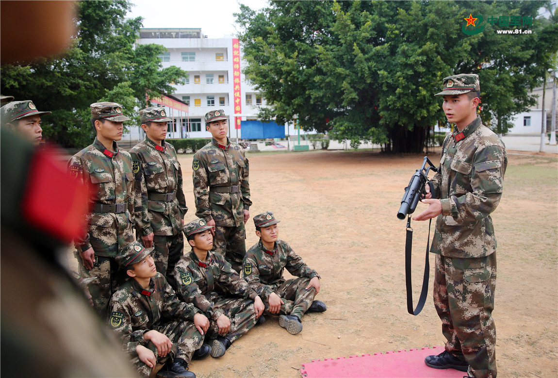 射擊能手為新戰(zhàn)士講解槍支使用方法。