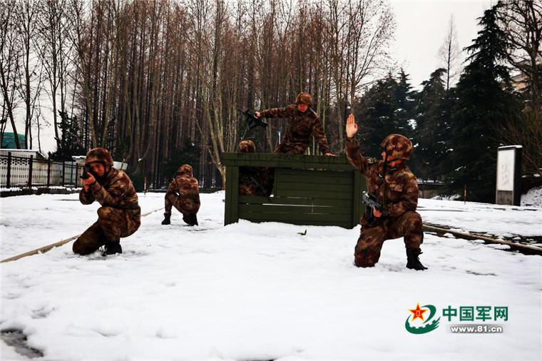“通過前方障礙物時,同志們交替掩護(hù),依次通過。通過時,注意觀察敵情,動作迅速隱蔽?!边@場雪,不僅為我們帶來了銀裝素裹的白色世界,同時也為實戰(zhàn)化練兵創(chuàng)造了條件。雖然雪層會使障礙濕滑,但在全班成員的協(xié)同配合之下,大家還是能順利通過。戰(zhàn)場上不會永遠(yuǎn)晴天,只有多經(jīng)歷這種惡劣天氣下的訓(xùn)練,才能鍛造召之即來、來之能戰(zhàn)、戰(zhàn)之必勝的精兵勁旅。