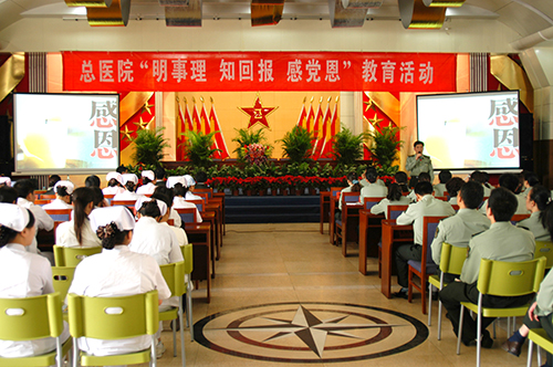 “滴水之恩,當涌泉相報”是中華民族的傳統(tǒng)美德。二炮總醫(yī)院積極開展“明事理、知回報、感黨恩”教育活動:面向全院征集、選編、整理感人故事,不同人員從不同角度講述親身經(jīng)歷或身邊故事,現(xiàn)場投影來回切換各種感人圖片和視頻;《感恩的心》、《感謝你》等輕音樂不時響起……有的回味無窮、有的潸然淚下。在《院報》開辟感恩故事征文、在局域網(wǎng)設置留言板,讓官兵結(jié)合崗位談體會、講感受、亮思想,在潛移默化中抒發(fā)心中感恩情懷,進一步激發(fā)拼搏進取、敬業(yè)奉獻的熱情和靈魂。