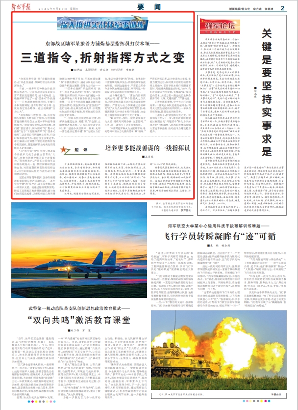 近年來(lái),隨著聯(lián)合訓(xùn)練走深走實(shí),指揮權(quán)限逐級(jí)下放,如何提升營(yíng)連指揮員的自主決策、臨機(jī)指揮能力,成為擺在各部隊(duì)面前的一個(gè)重要課題。東部戰(zhàn)區(qū)陸軍某旅積極推動(dòng)指揮方式變革,從以往的“照計(jì)劃打”轉(zhuǎn)變?yōu)槿缃竦摹鞍醋兓{(diào)”,既給一線指揮員自主決策、隨機(jī)應(yīng)變提供了空間,又通過(guò)總體調(diào)控和協(xié)同指揮把握戰(zhàn)場(chǎng)主動(dòng)權(quán),讓每個(gè)層級(jí)都能在戰(zhàn)斗力坐標(biāo)系中找準(zhǔn)定位、精準(zhǔn)配合,實(shí)現(xiàn)“1+1>2”的作戰(zhàn)效能。