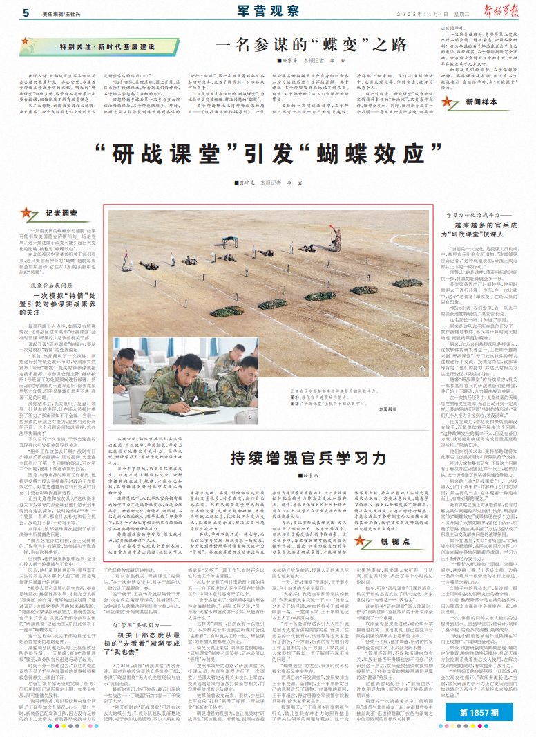 效果隨著改變而來(lái)。很快,少校以上軍官的“打樣”贏得了好評(píng),“研戰(zhàn)課堂”漸漸有了熱度。