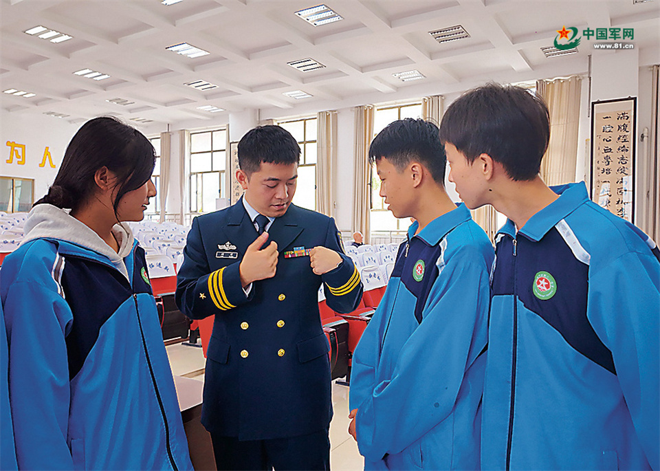 “當(dāng)海軍有什么要求?”“我手臂上的這個(gè)疤痕影響當(dāng)兵嗎?”宣講活動(dòng)現(xiàn)場(chǎng),學(xué)生紛紛舉手提問(wèn)。作為學(xué)校的校外輔導(dǎo)員,劉洋告訴筆者,基地每年都會(huì)選派官兵代表到學(xué)校開展國(guó)防教育、助學(xué)活動(dòng),與學(xué)生們面對(duì)面交流,鼓勵(lì)他們參軍報(bào)國(guó)。