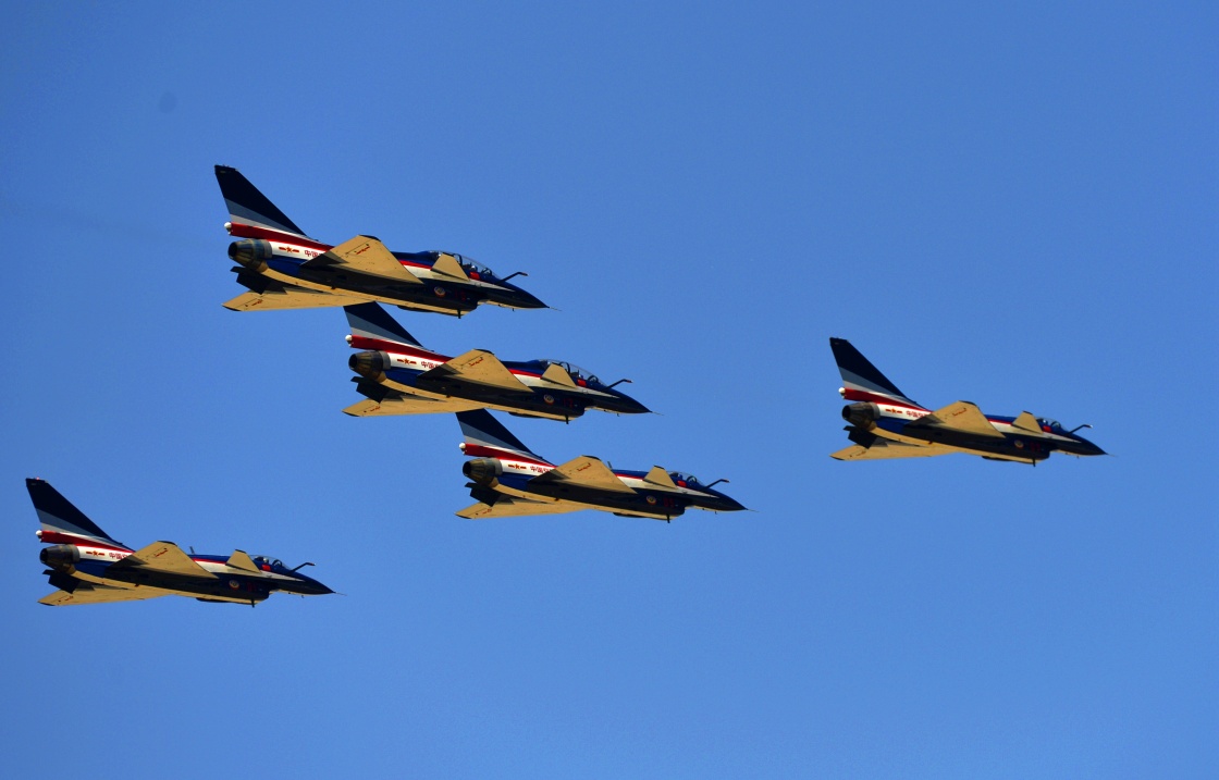 春雨后的華北某軍用機(jī)場,碧空如洗,風(fēng)輕云淡。11時許,伴隨著震耳欲聾的發(fā)動機(jī)轟鳴聲,6架紅、白、藍(lán)3色涂裝的空軍殲-10表演機(jī)滑出停機(jī)坪,依次滑向起飛線。