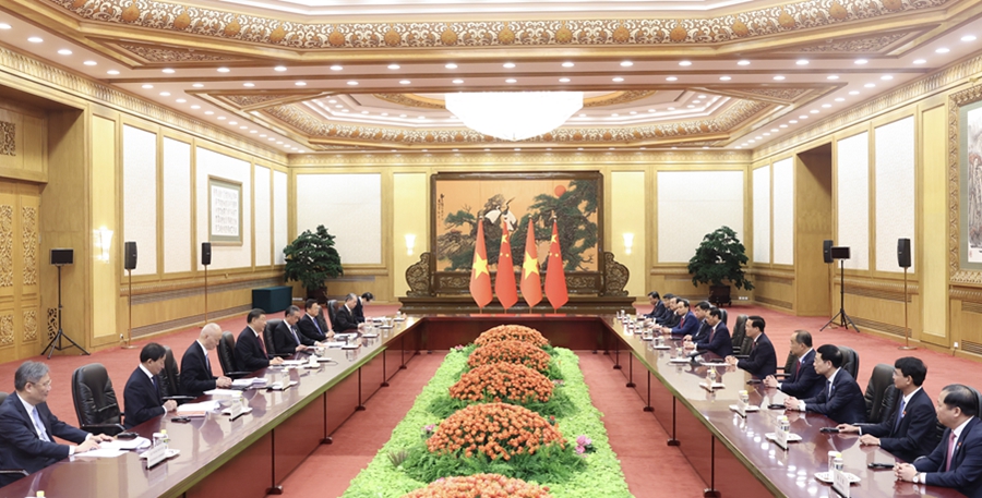 習(xí)近平指出,中越兩國(guó)在爭(zhēng)取各自民族解放事業(yè)中相互支持,結(jié)下了“同志加兄弟”的深厚情誼。中越都在推進(jìn)各自的社會(huì)主義現(xiàn)代化事業(yè),都把中越關(guān)系作為各自對(duì)外政策的優(yōu)先方向,都把對(duì)方發(fā)展視為自身發(fā)展機(jī)遇。面對(duì)風(fēng)云變幻的國(guó)際形勢(shì)和艱巨繁重的國(guó)內(nèi)發(fā)展任務(wù),兩國(guó)要不忘傳統(tǒng)友好初心,牢記共同理想使命,攜手走好社會(huì)主義道路,構(gòu)建具有戰(zhàn)略意義的命運(yùn)共同體,確保兩國(guó)關(guān)系始終行駛在互利共贏、攜手發(fā)展的快車道上。