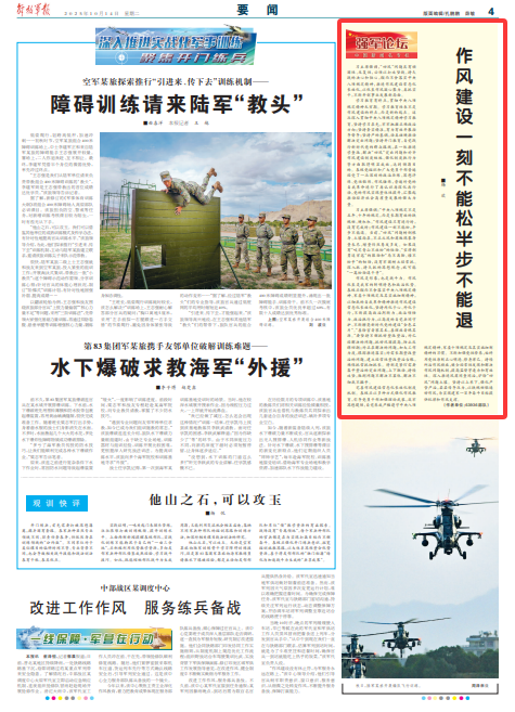 作風(fēng)是形象,也是戰(zhàn)斗力。作風(fēng)優(yōu)良是我軍的鮮明特色和政治優(yōu)勢。各級(jí)應(yīng)鍥而不舍落實(shí)中央八項(xiàng)規(guī)定精神、軍委十項(xiàng)規(guī)定及其實(shí)施細(xì)則精神,以徹底的自我革命精神推進(jìn)作風(fēng)建設(shè)常態(tài)化長效化,堅(jiān)持內(nèi)化于心、外化于行,不斷提高政治判斷力、政治領(lǐng)悟力、政治執(zhí)行力,以高度的自覺共同守護(hù)、不斷擦亮新時(shí)代黨的建設(shè)“金色名片”。“善除害者察其本,善理疾者絕其源?!币獔?jiān)持不懈抓好整改整治,對(duì)已經(jīng)解決的問題,抓好鞏固提高,防止反彈回潮;對(duì)正在解決的問題,加大工作力度,跟蹤推進(jìn)落實(shí);對(duì)需長期整改整治的問題,建立經(jīng)常性整改整治臺(tái)賬,確保抓常抓細(xì)抓長。特別是緊盯需要集中整治的突出問題,上下聯(lián)動(dòng)、持續(xù)攻堅(jiān),做到問題不解決不罷休、解決不徹底不撒手。