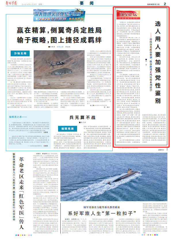 “用得正人,為善者皆勸;誤用惡人,不善者競進?!边x人用人準(zhǔn)不準(zhǔn)、公不公、好不好,關(guān)系部隊建設(shè)全局,關(guān)系未來戰(zhàn)爭勝負,關(guān)系人心聚散,有著十分重要的導(dǎo)向作用。干部如何選得準(zhǔn)?習(xí)主席強調(diào):“選人用人,要加強黨性鑒別,注重考察干部的境界格局和忠誠度廉潔度。”