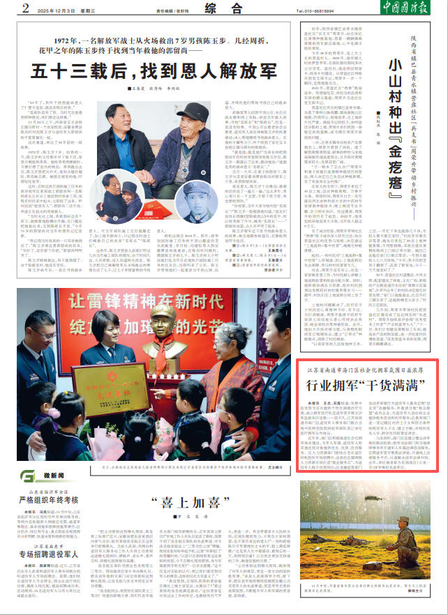 中國(guó)國(guó)防報(bào)訊 王志、石磊報(bào)道:發(fā)揮中醫(yī)優(yōu)勢(shì)為官兵提供個(gè)性化調(diào)理治療方案,成立擁軍醫(yī)療隊(duì)走進(jìn)軍營(yíng)開(kāi)展義診和急救知識(shí)宣教……前不久,江蘇省南通市海門(mén)區(qū)退役軍人事務(wù)部門(mén)聯(lián)合當(dāng)?shù)刂嗅t(yī)特色醫(yī)院同駐軍部隊(duì)簽訂深化醫(yī)療擁軍合作協(xié)議。