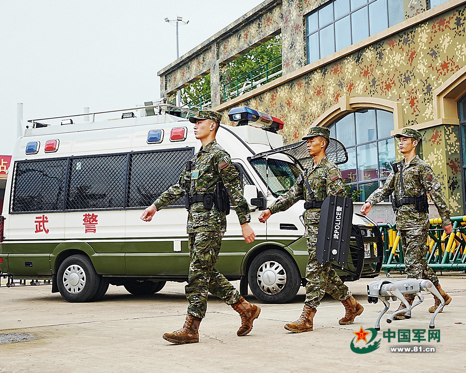 近日,武警山東總隊(duì)青島支隊(duì)官兵攜機(jī)器狗等裝備巡邏執(zhí)勤。杜憲法攝
