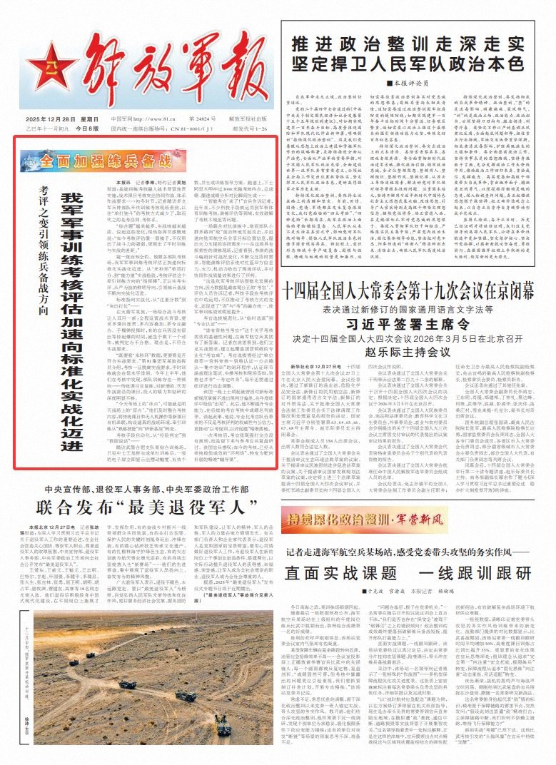 窺一斑而知全豹。放眼各部隊考核場,我軍軍事訓練考核評估正加速向標準化實戰(zhàn)化邁進。從“米秒環(huán)”單項打分,到“能力值”實戰(zhàn)檢驗,考核評估這個牽引訓練方向的“指揮棒”,正以實考實評、從嚴為戰(zhàn)的鮮明導向,引領練兵備戰(zhàn)不斷向?qū)崙?zhàn)化邁進。
