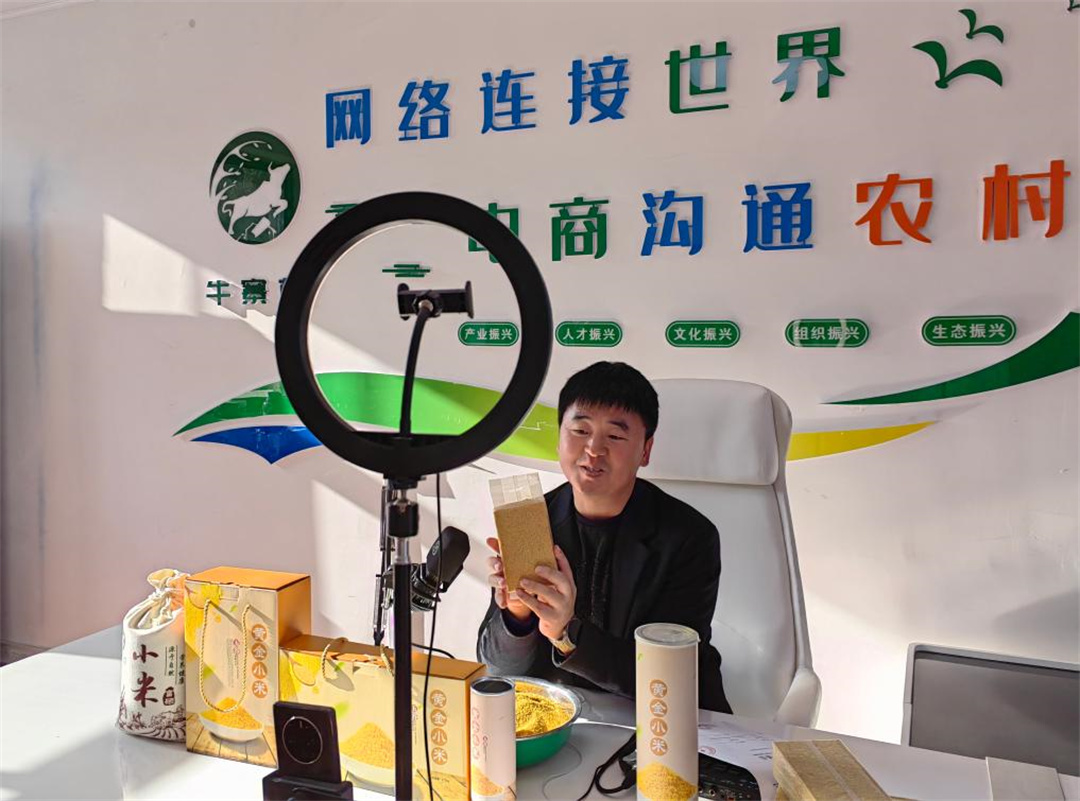 志丹縣杏河鎮(zhèn)牛寨村黨支部書記張志亮正通過(guò)電商售賣小米。新華社記者孫正好 攝
