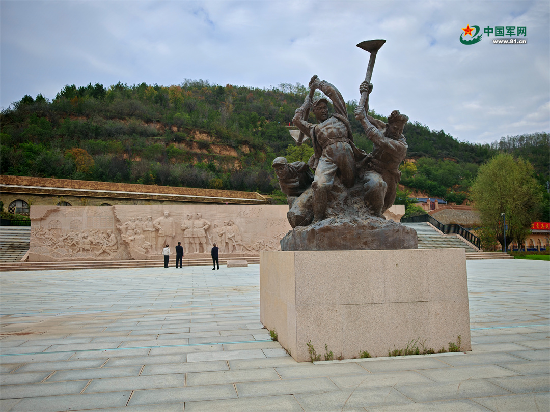 南泥灣大生產(chǎn)紀(jì)念館前的雕塑。中國(guó)軍網(wǎng)記者李佳琦 攝