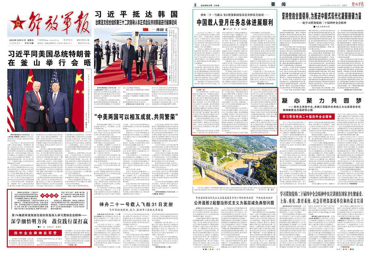 宏圖凌云志,勇毅啟新程。即日起,解放軍報推出“四中全會精神在軍營”專欄,刊發(fā)各部隊深入學(xué)習(xí)貫徹黨的二十屆四中全會精神的好經(jīng)驗、好做法,展示廣大官兵為如期實現(xiàn)建軍一百年奮斗目標(biāo)不懈奮斗的新風(fēng)采。