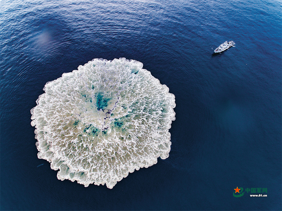 反水雷訓(xùn)練中戰(zhàn)艦掃爆水雷。黃文洲 攝
