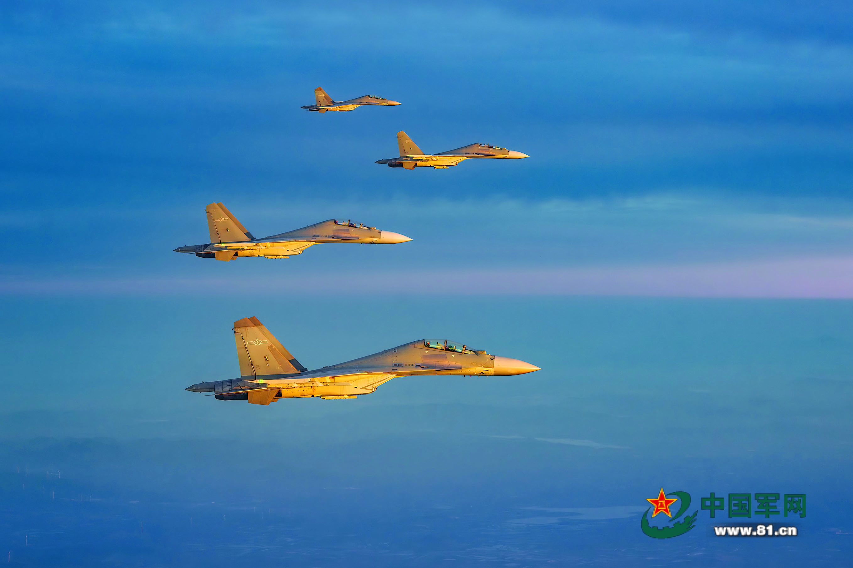 日落時分,戰(zhàn)機在夕陽映照下仿佛披上一層金色戰(zhàn)甲。編隊再次進行空中加油,隨后展開區(qū)域封控訓練……
