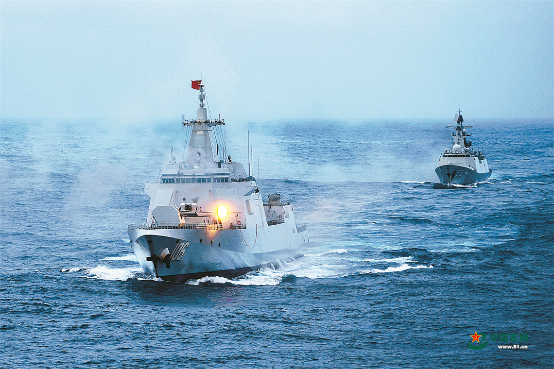 海軍艦艇編隊位臺島以東開展主炮對海射擊演練。解放軍報特約通訊員 喬晨曦攝