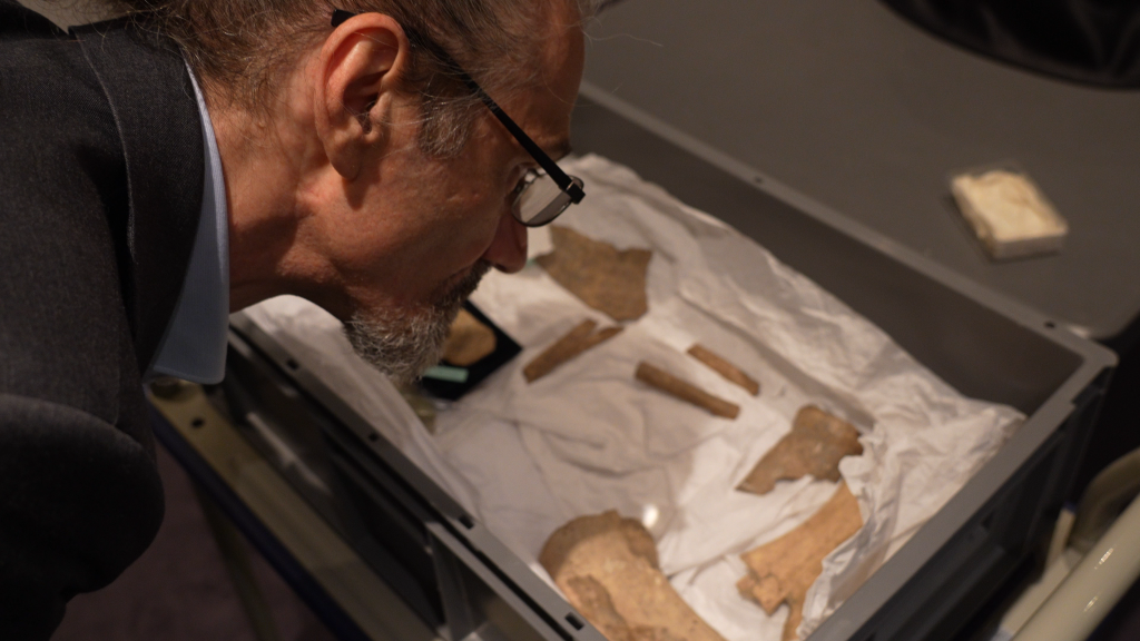 法國(guó)賽努奇博物館珍藏著15片甲骨。中國(guó)研究團(tuán)隊(duì)帶來(lái)高清攝影設(shè)備,從48個(gè)角度打光,為每一枚甲骨片留下96張照片?!拔覀兒芨吲d參與這一項(xiàng)目。這對(duì)中國(guó)文明史很重要,對(duì)世界文明史同樣重要?!辟惻娌┪镳^館長(zhǎng)埃里克·勒菲弗說(shuō)。