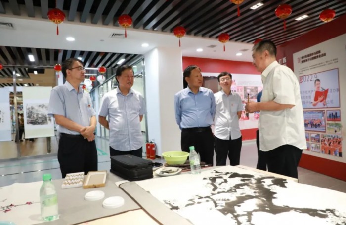 大興區(qū)人大常委會(huì)黨組成員陳文宣布“筆墨寄情 共繪民主新篇章”主題書(shū)畫(huà)作品展正式開(kāi)幕。開(kāi)幕式結(jié)束后,參會(huì)人員現(xiàn)場(chǎng)隨行參觀書(shū)畫(huà)作品,并與書(shū)畫(huà)老師進(jìn)行交流筆會(huì)。