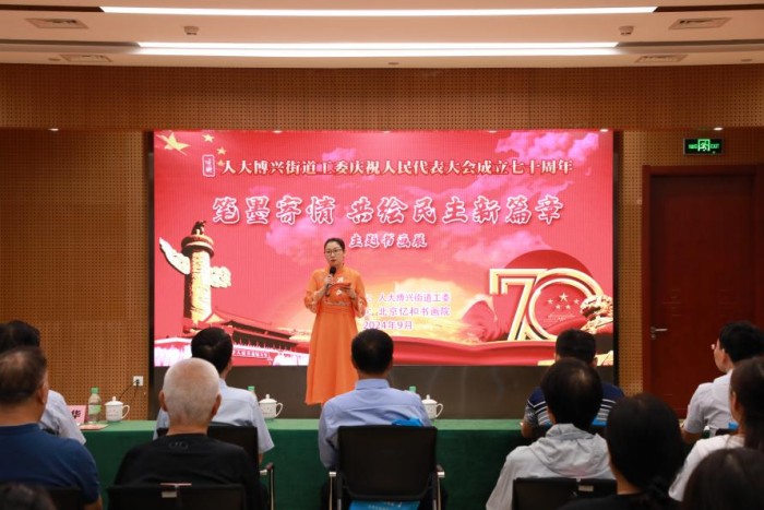 人大博興街道工委慶祝人民代表大會(huì)成立七十周年系列活動(dòng)暨“筆墨寄情 共繪民主新篇章”主題書(shū)畫(huà)作品展,于9月4日在博興街道黨群活動(dòng)中心正式啟動(dòng),本次活動(dòng)旨在通過(guò)書(shū)畫(huà)藝術(shù)形式,宣傳人民代表大會(huì)制度的歷史和成就,持續(xù)增強(qiáng)人民群眾的制度自信和文化自信。大興區(qū)人大常委會(huì)黨組成員陳文、經(jīng)開(kāi)區(qū)組織人事部統(tǒng)戰(zhàn)群團(tuán)處焦曉云、區(qū)人大代表、街道班子成員及轄區(qū)選民代表參加此次活動(dòng)。