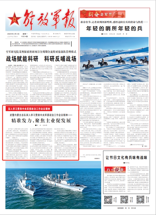 精準發(fā)力,聚焦主業(yè)促發(fā)展。隨著該總隊學習貫徹中央軍委政治工作會議精神持續(xù)深入,官兵戰(zhàn)備訓練熱情不斷高漲。在滴水成冰的“冷極”根河,抗嚴寒訓練成為官兵的“家常菜”;在阿拉善的大漠戈壁,機關干部與基層官兵圍繞提升極端天候下遂行任務能力集智攻關,多個瓶頸問題在激烈討論中被逐一破解……