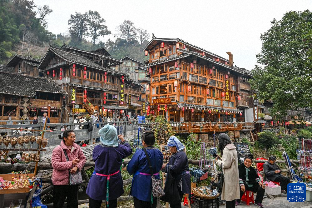 游客在貴州省黎平縣肇興侗寨里游覽(12月19日攝)。新華社記者 楊文斌 攝