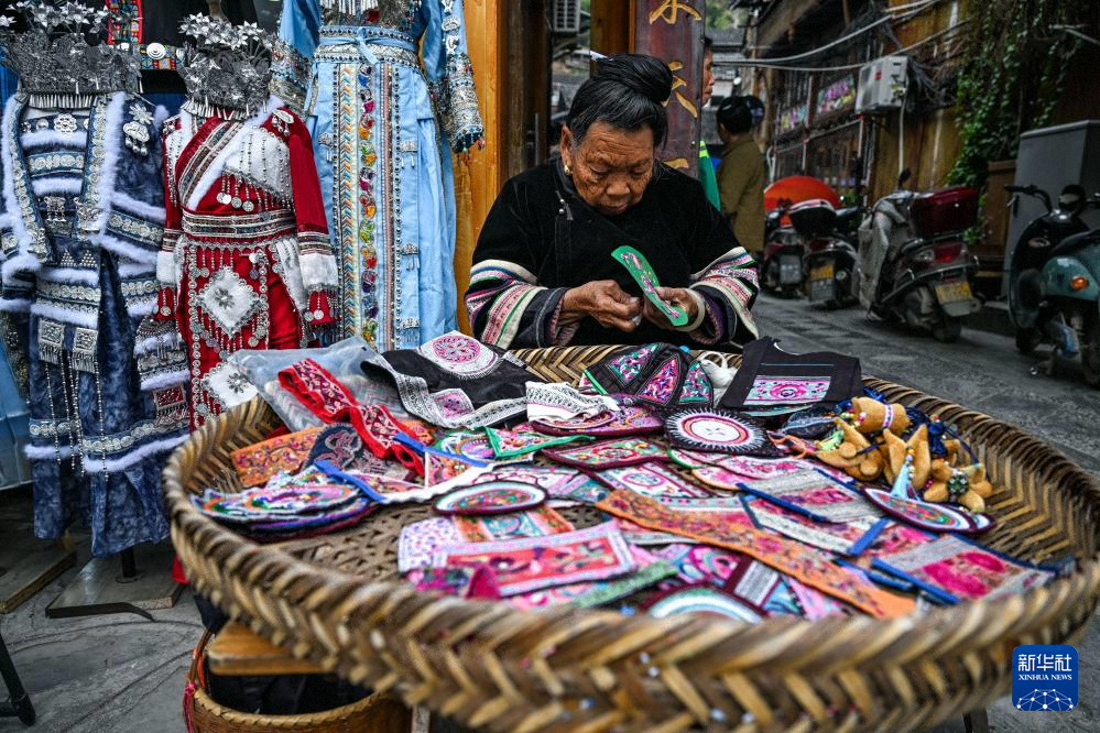 貴州省黎平縣肇興侗寨的村民在刺繡(12月19日攝)。新華社記者 楊文斌 攝