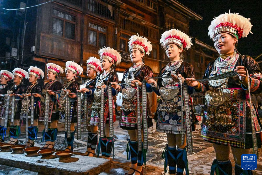 貴州省黎平縣肇興侗寨的村民在給游客表演節(jié)目(12月19日攝)。新華社記者 楊文斌 攝