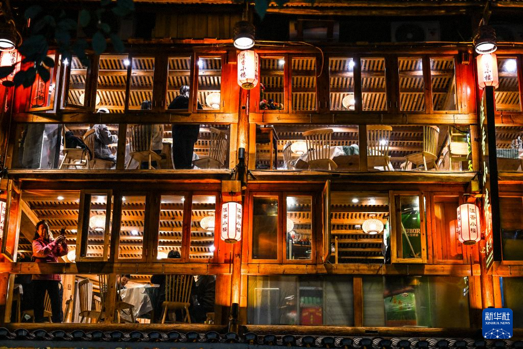 游客在貴州省黎平縣肇興侗寨一家餐廳就餐(12月19日攝)。新華社記者 楊文斌 攝