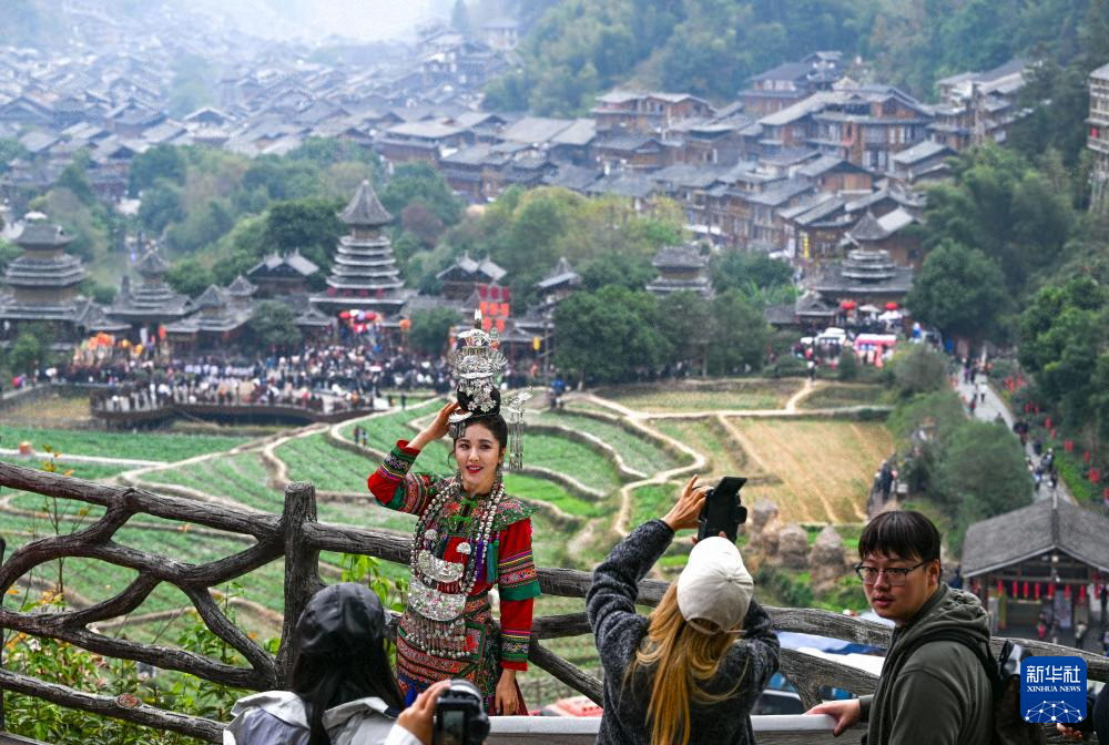 游客在貴州省黎平縣肇興侗寨旅拍留影(12月19日攝)。新華社記者 楊文斌 攝