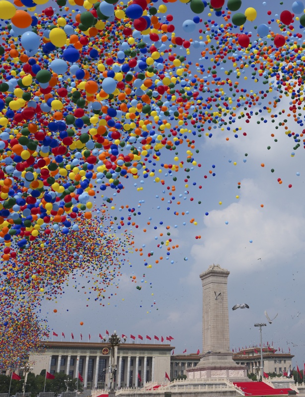 2025年9月3日,紀念中國人民抗日戰(zhàn)爭暨世界反法西斯戰(zhàn)爭勝利80周年大會在北京隆重舉行。這是紀念大會現(xiàn)場放飛氣球和鴿子。新華社 發(fā)