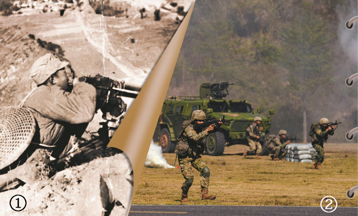 圖①:八路軍第120師官兵參加雁門關(guān)伏擊戰(zhàn)。新華社發(fā) 圖②:第73集團(tuán)軍某旅官兵參加綜合演訓(xùn)。朱萬福攝