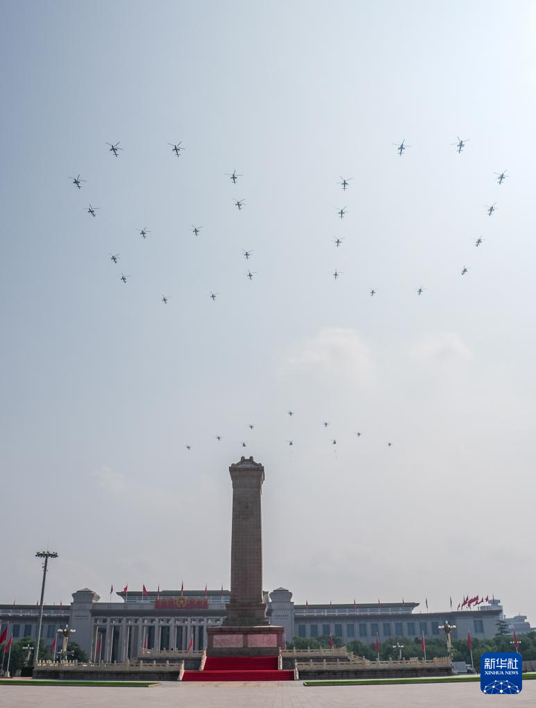 9月3日,紀(jì)念中國(guó)人民抗日戰(zhàn)爭(zhēng)暨世界反法西斯戰(zhàn)爭(zhēng)勝利80周年大會(huì)在北京隆重舉行。這是空中護(hù)旗梯隊(duì)通過(guò)天安門(mén)廣場(chǎng)。