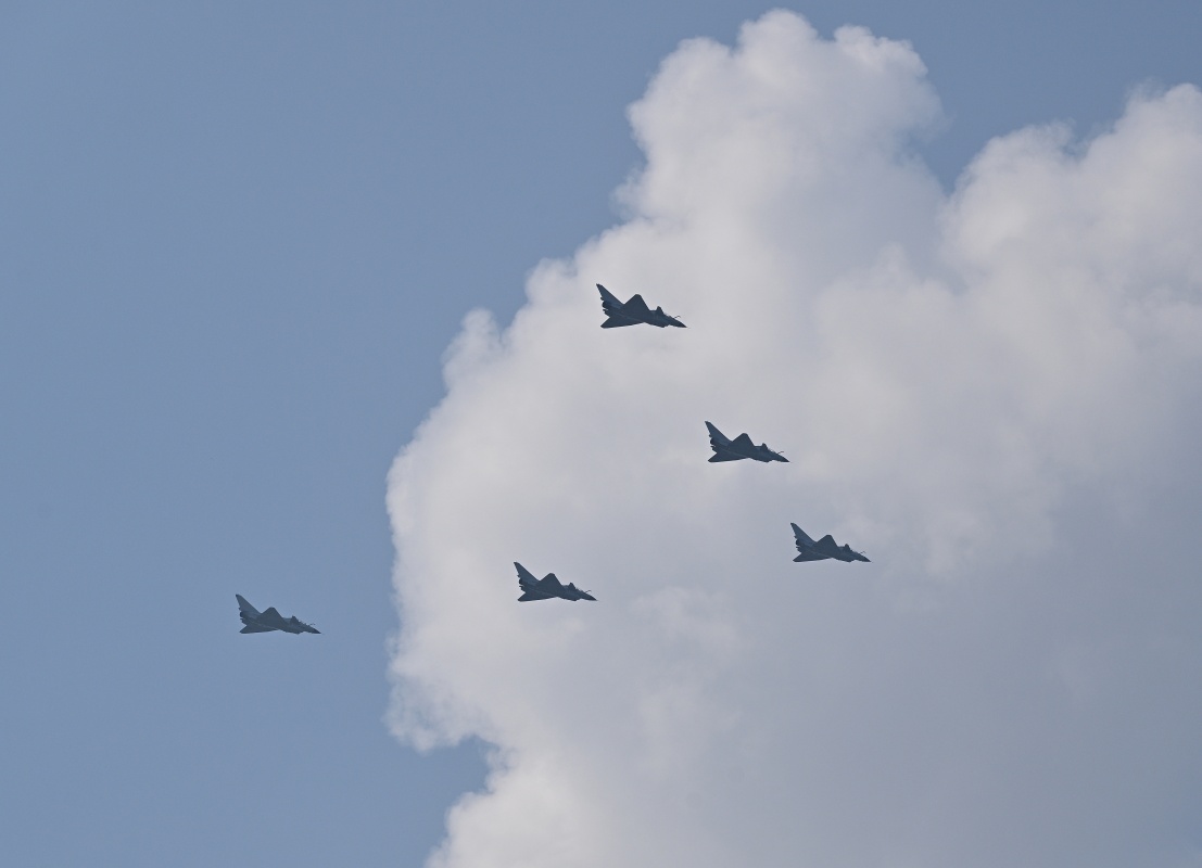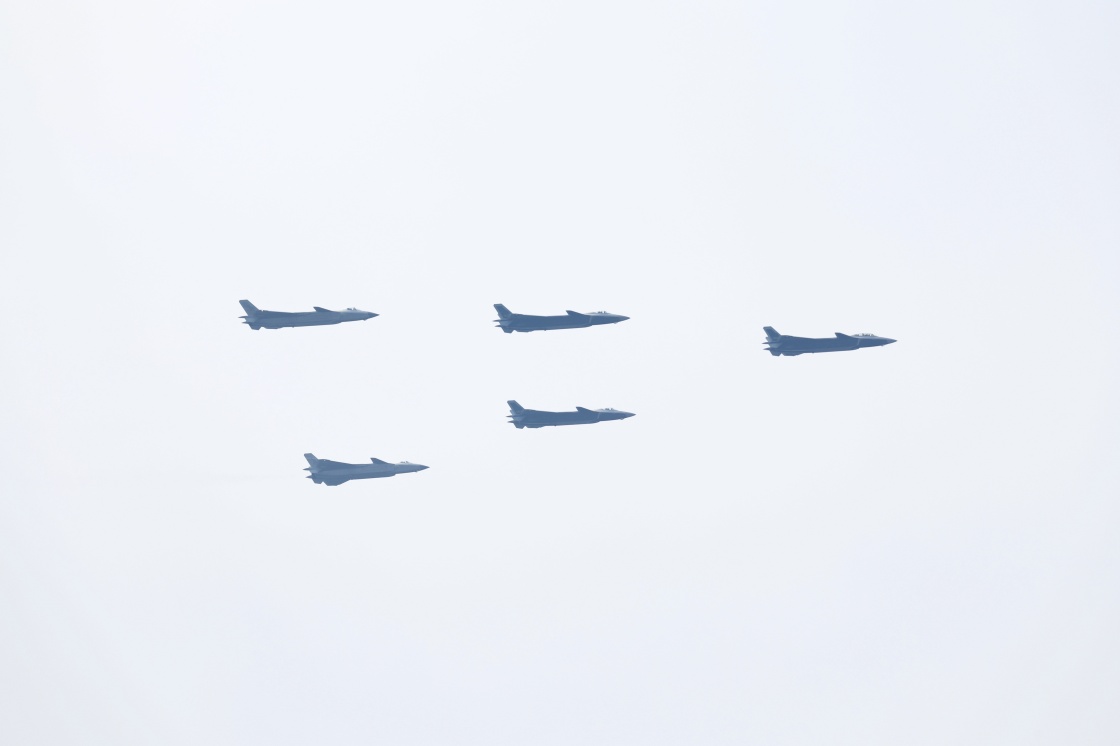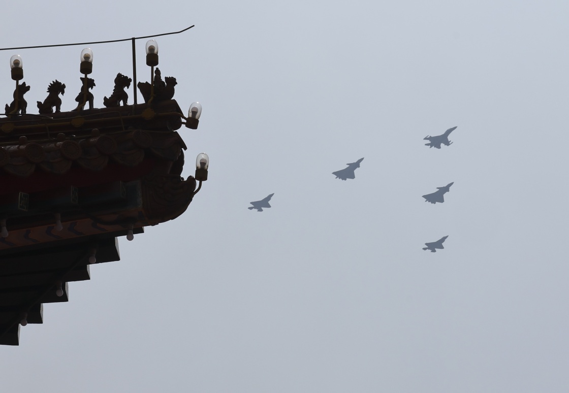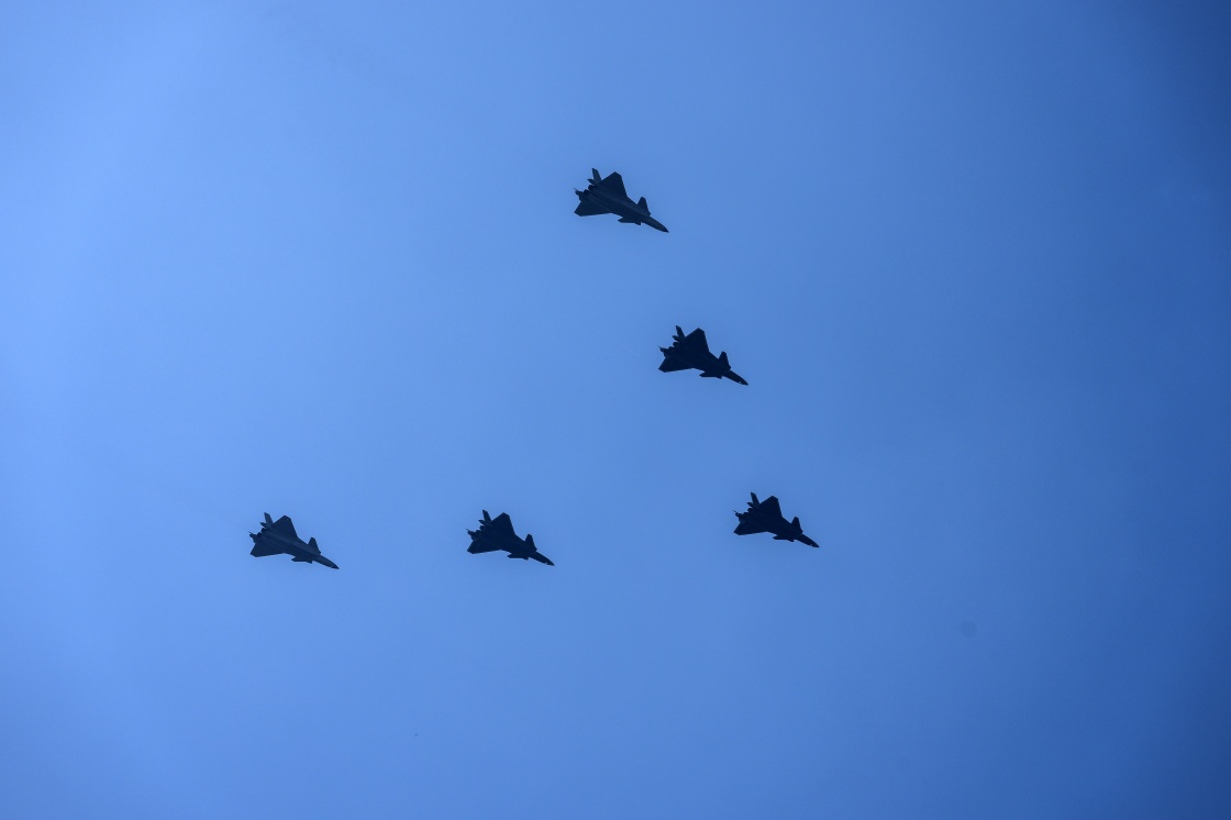 9月3日,紀(jì)念中國人民抗日戰(zhàn)爭暨世界反法西斯戰(zhàn)爭勝利80周年大會在北京隆重舉行。這是殲擊機梯隊。