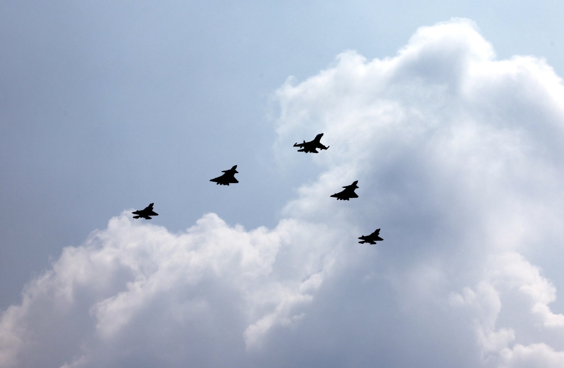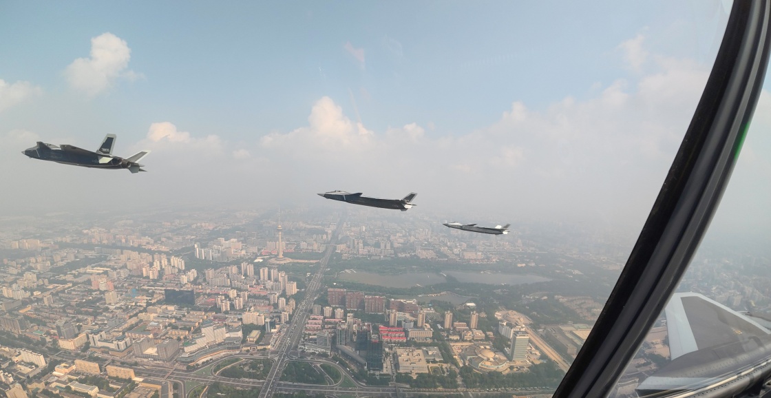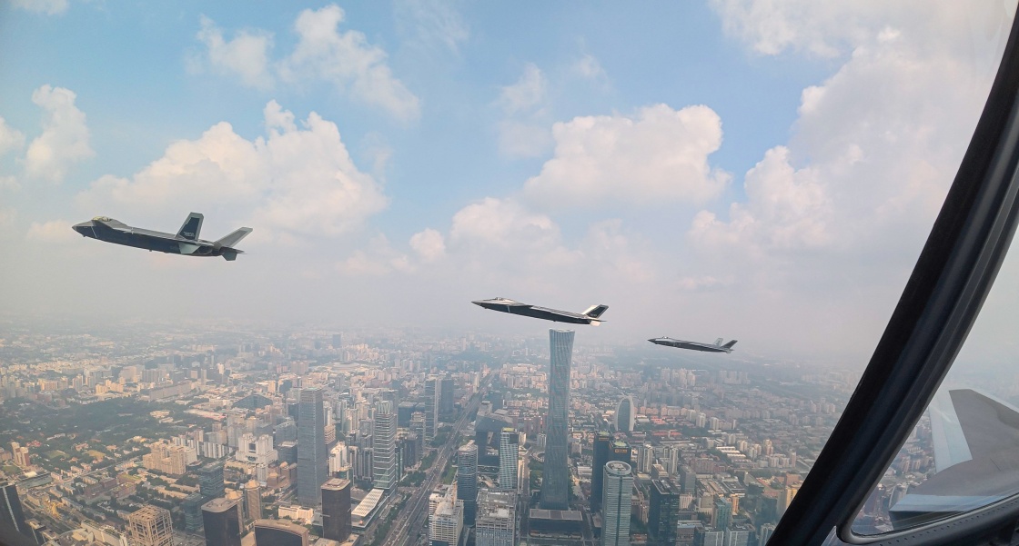 9月3日,紀(jì)念中國人民抗日戰(zhàn)爭暨世界反法西斯戰(zhàn)爭勝利80周年大會在北京隆重舉行。這是在北京天壇公園拍攝的殲擊機梯隊。