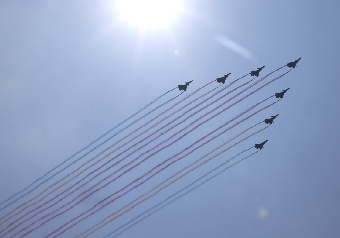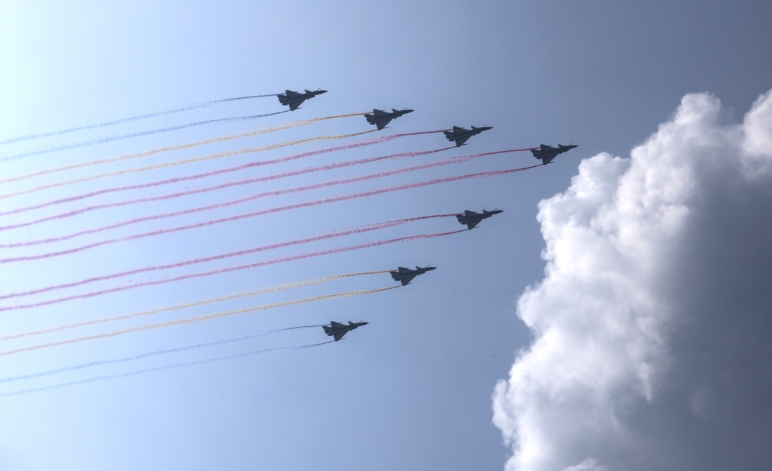 9月3日,紀念中國人民抗日戰(zhàn)爭暨世界反法西斯戰(zhàn)爭勝利80周年大會在北京隆重舉行。這是教練機梯隊接受檢閱。