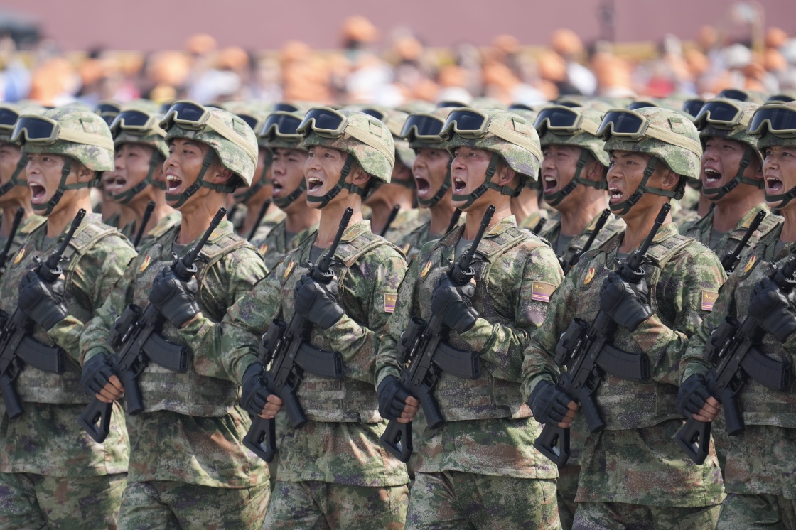 9月3日,紀(jì)念中國(guó)人民抗日戰(zhàn)爭(zhēng)暨世界反法西斯戰(zhàn)爭(zhēng)勝利80周年大會(huì)在北京隆重舉行。這是信息支援部隊(duì)方隊(duì)接受檢閱。