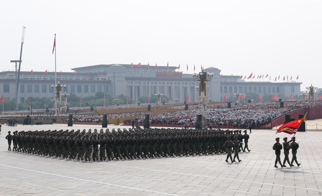 9月3日,紀(jì)念中國(guó)人民抗日戰(zhàn)爭(zhēng)暨世界反法西斯戰(zhàn)爭(zhēng)勝利80周年大會(huì)在北京隆重舉行。這是信息支援部隊(duì)方隊(duì)通過(guò)天安門廣場(chǎng)。