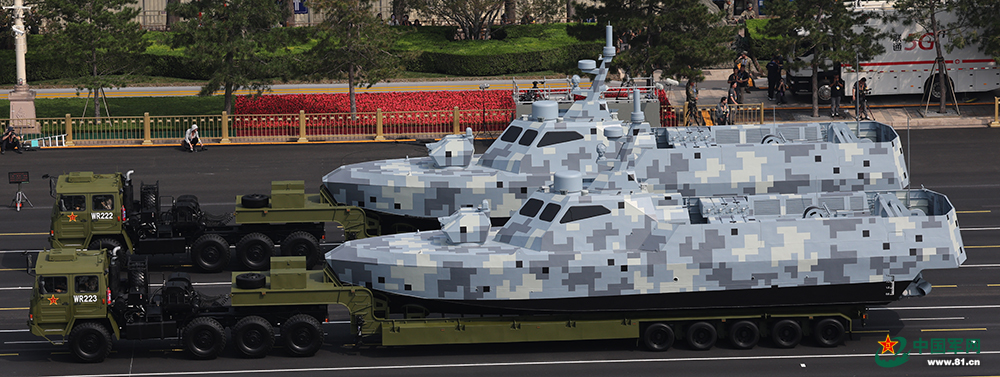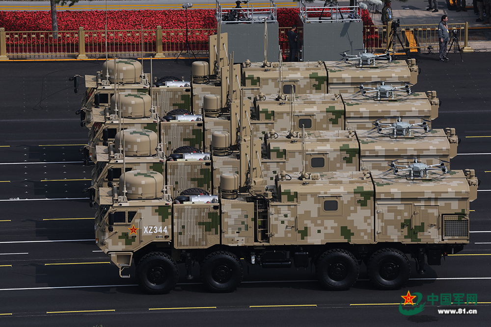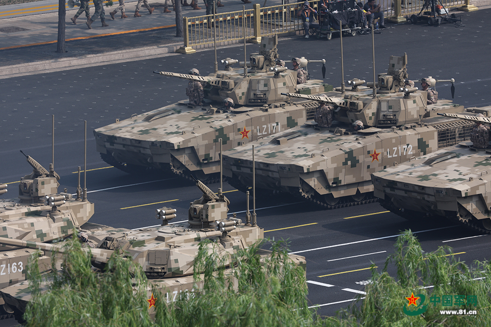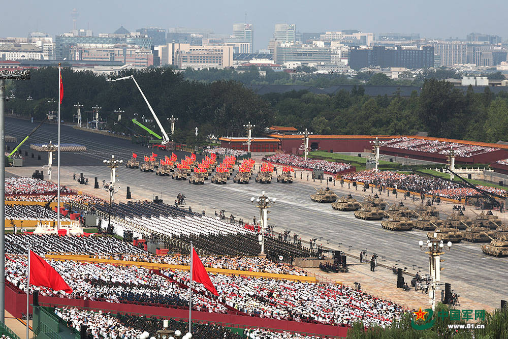 在80面抗戰(zhàn)英模部隊(duì)榮譽(yù)旗幟組成的戰(zhàn)旗方隊(duì)的引領(lǐng)下,裝備方隊(duì)以實(shí)戰(zhàn)化聯(lián)合編組,分陸上作戰(zhàn)群、海上作戰(zhàn)群、防空反導(dǎo)群、信息作戰(zhàn)群、無人作戰(zhàn)群、后裝保障群、戰(zhàn)略打擊群等7個(gè)作戰(zhàn)群接受檢閱,充分展示我軍制勝現(xiàn)代戰(zhàn)爭的強(qiáng)大能力。這次受閱的武器裝備全部為國產(chǎn)現(xiàn)役主戰(zhàn)裝備,多數(shù)為首次亮相。