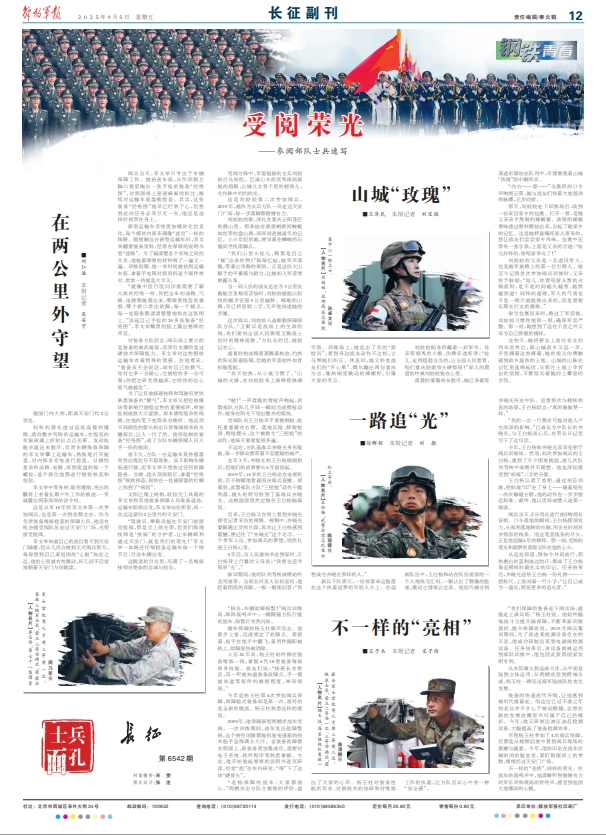 5年后,當(dāng)入伍通知書送到家時,王白楊背上行囊對父母說:“我要去追尋那束‘光’?!?/p>