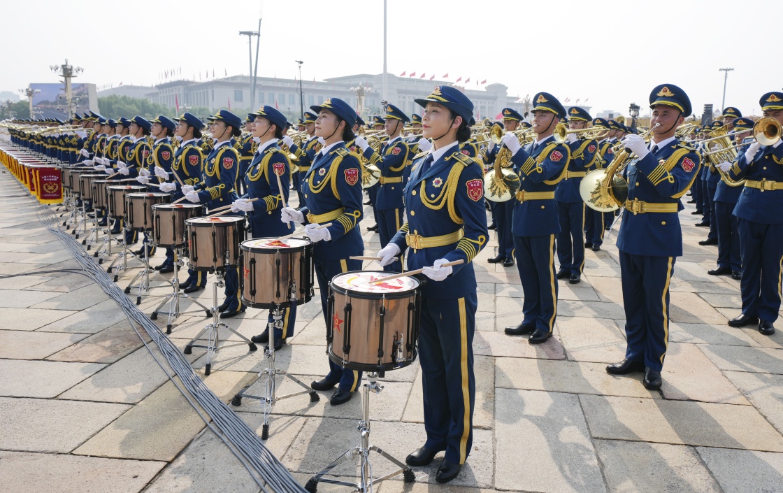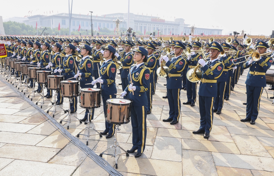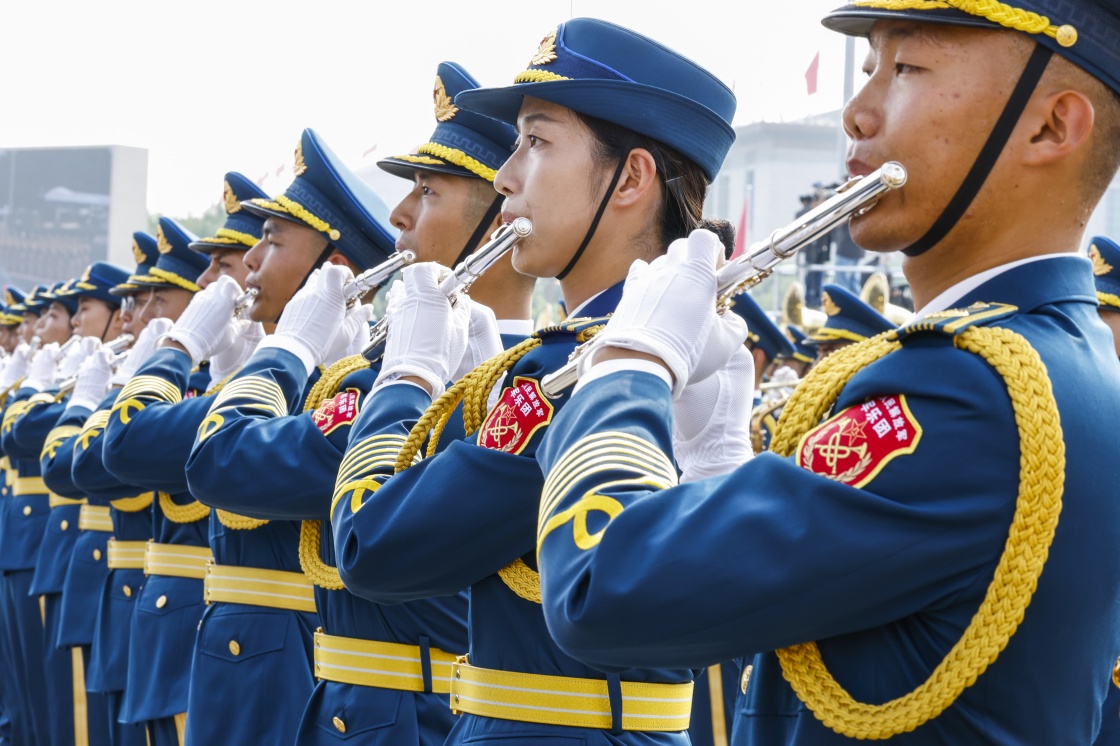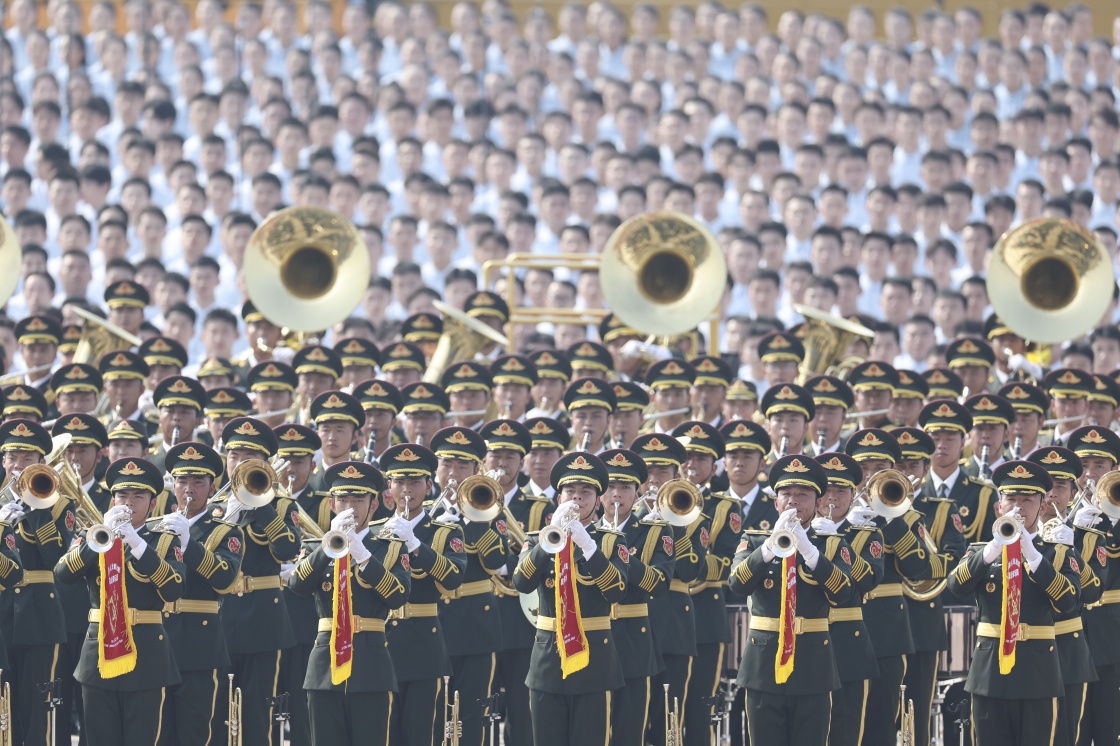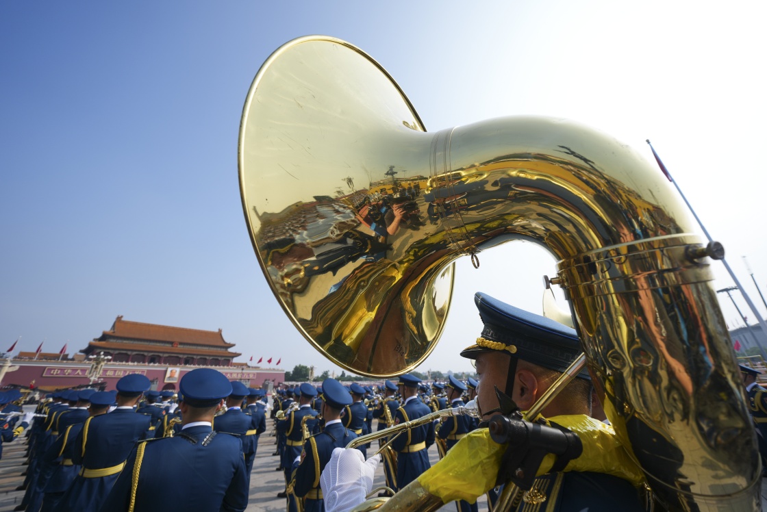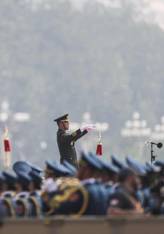 9月3日,紀(jì)念中國(guó)人民抗日戰(zhàn)爭(zhēng)暨世界反法西斯戰(zhàn)爭(zhēng)勝利80周年大會(huì)在北京隆重舉行。這是中國(guó)人民解放軍聯(lián)合軍樂團(tuán)在演奏。